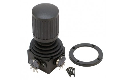 Questo joystick a 3 funzioni ha i movimenti X e Y convenzionali, entrambi con una corsa di 50 °. Il terzo potenziometro è controllato con un movimento rotatorio. Ogni asse ha molle di ritorno in modo che quando rilasci, ogni vaso avrà una lettura di resistenza di 2.5K.